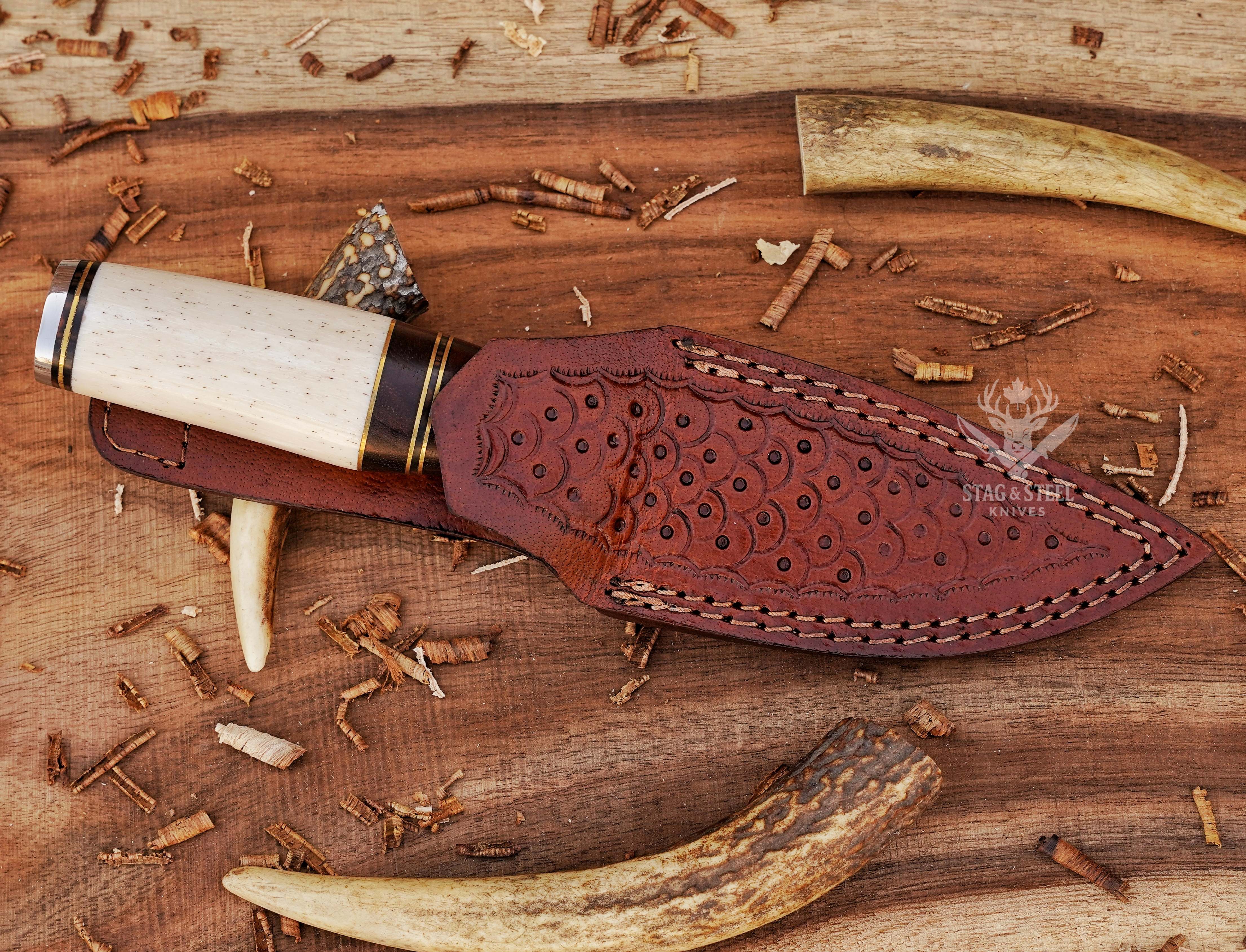 Rust-resistant by design—no oiling required. Simply keep the blade clean and dry. Avoid storing the knife wet, especially to preserve the integrity of the bone handle. Store it dry in the sheath for long-term durability.