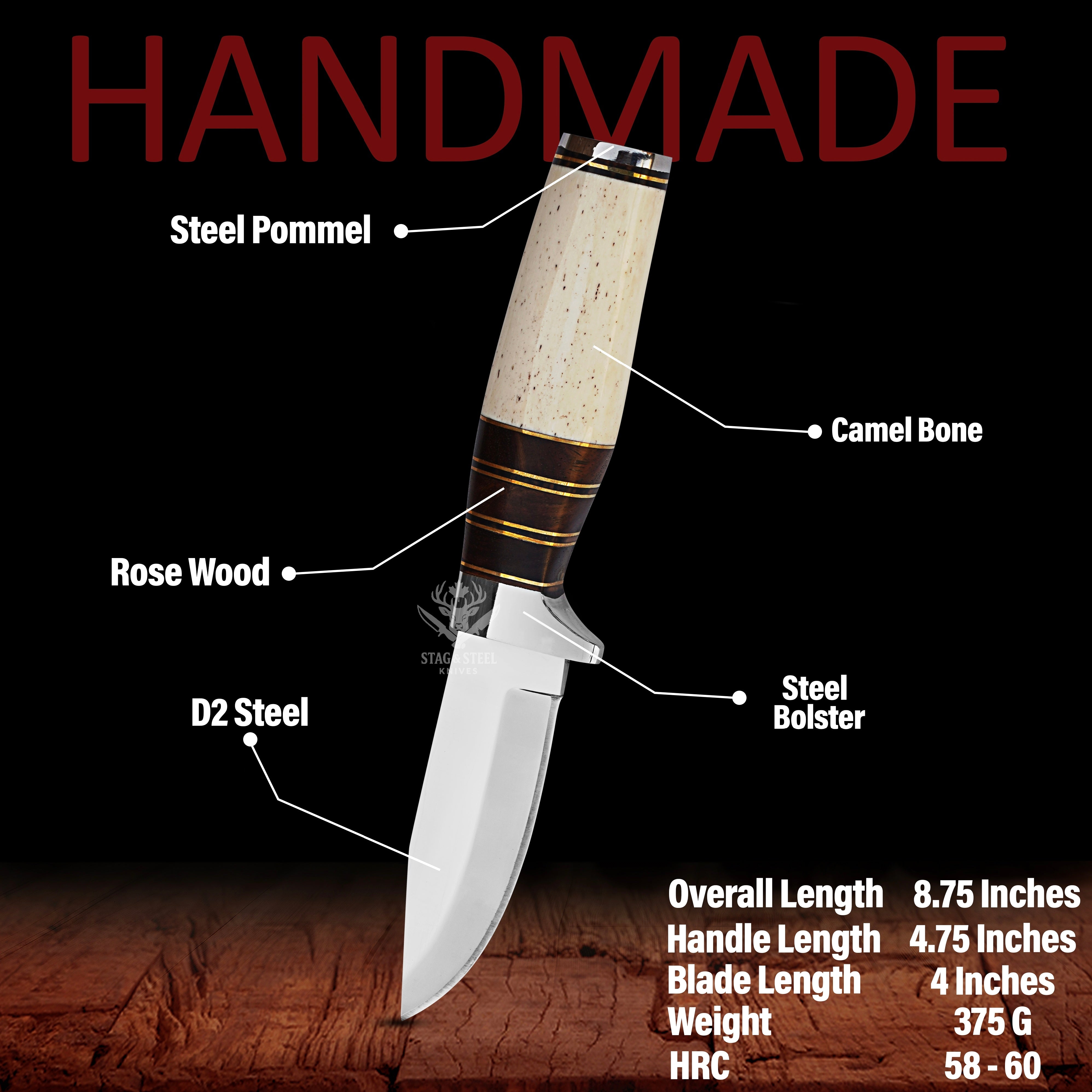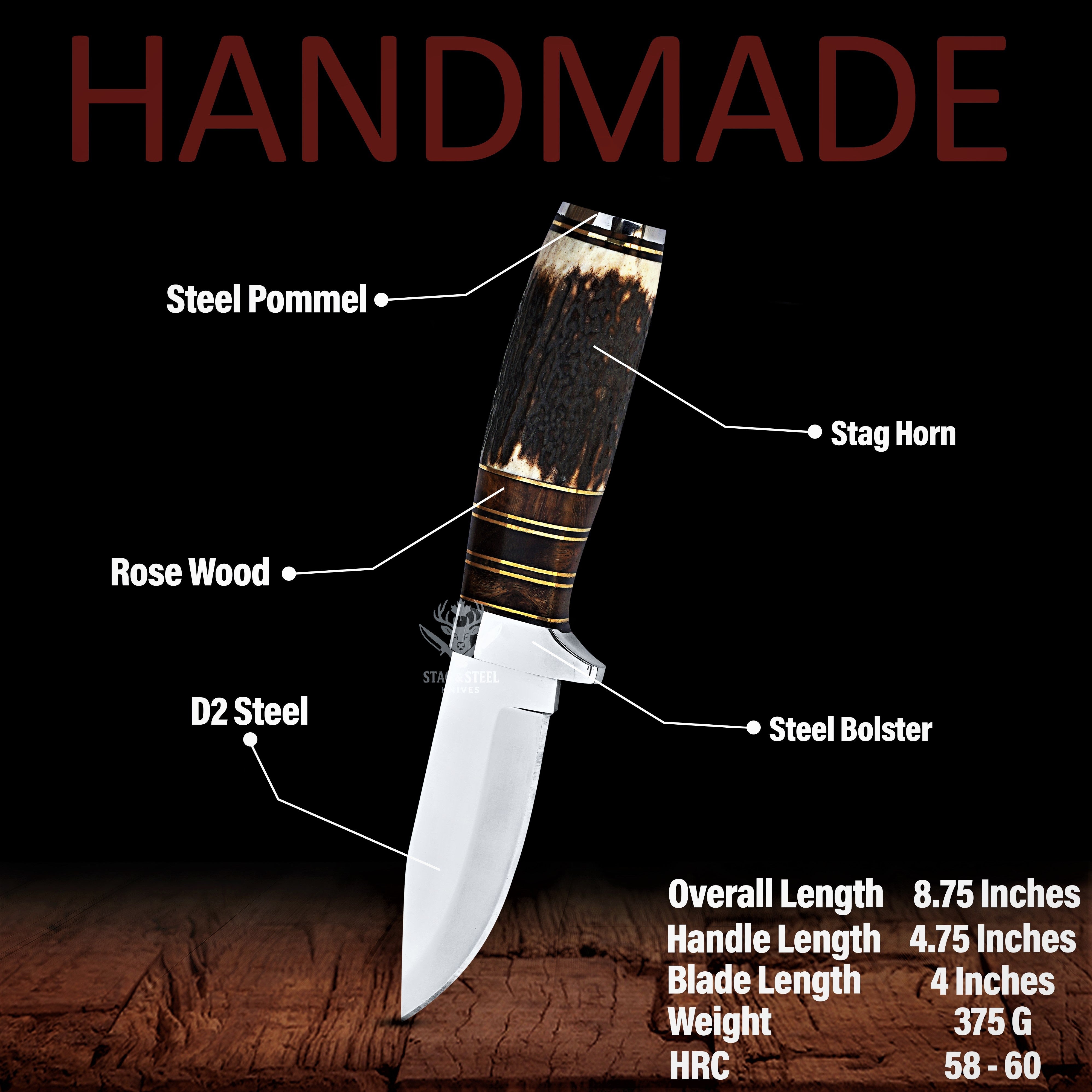 D2 Small Hunting Knife with Stainless Steel Guard – Handmade Compact Blade