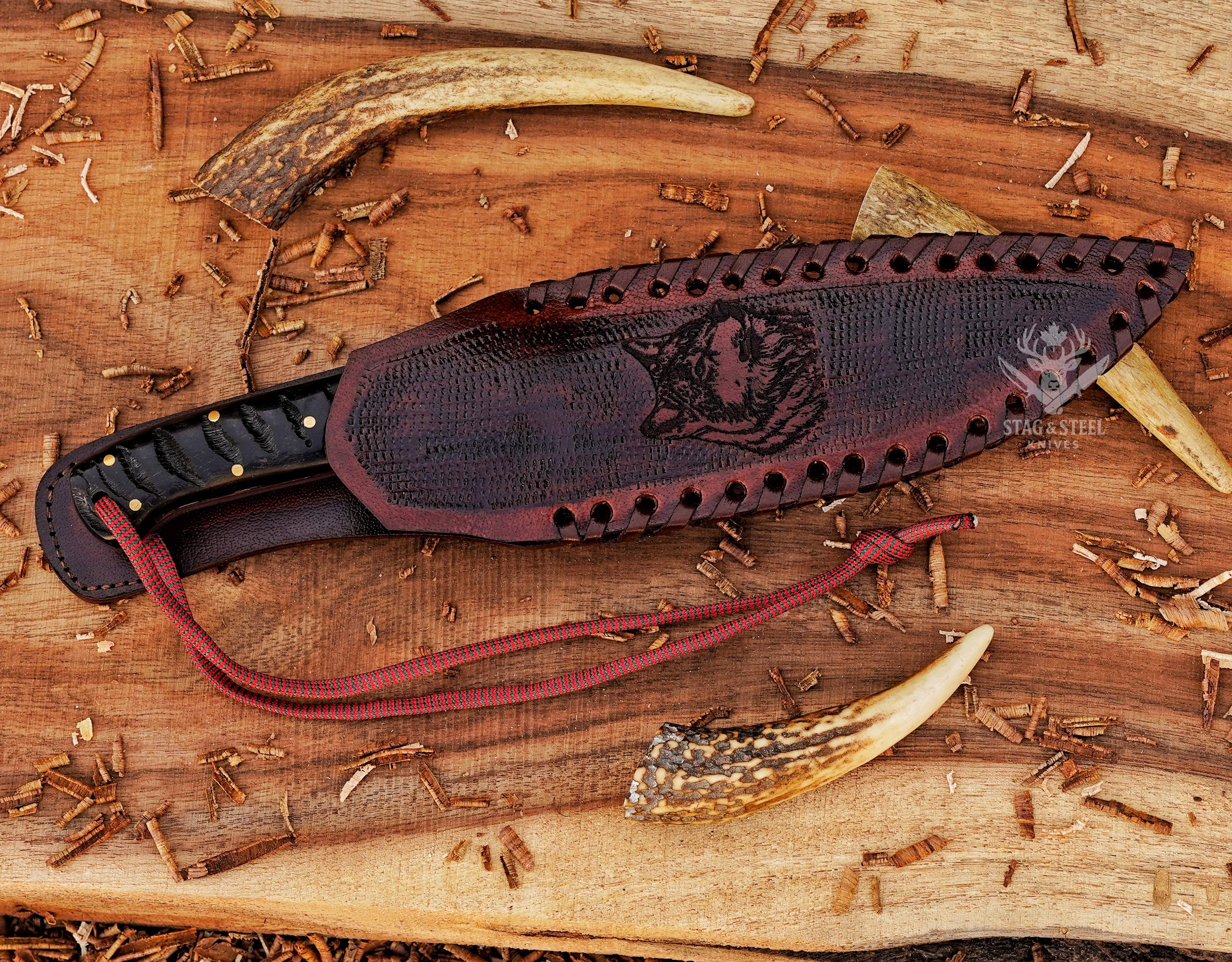 - Wolf Engraved handle & leather sheath