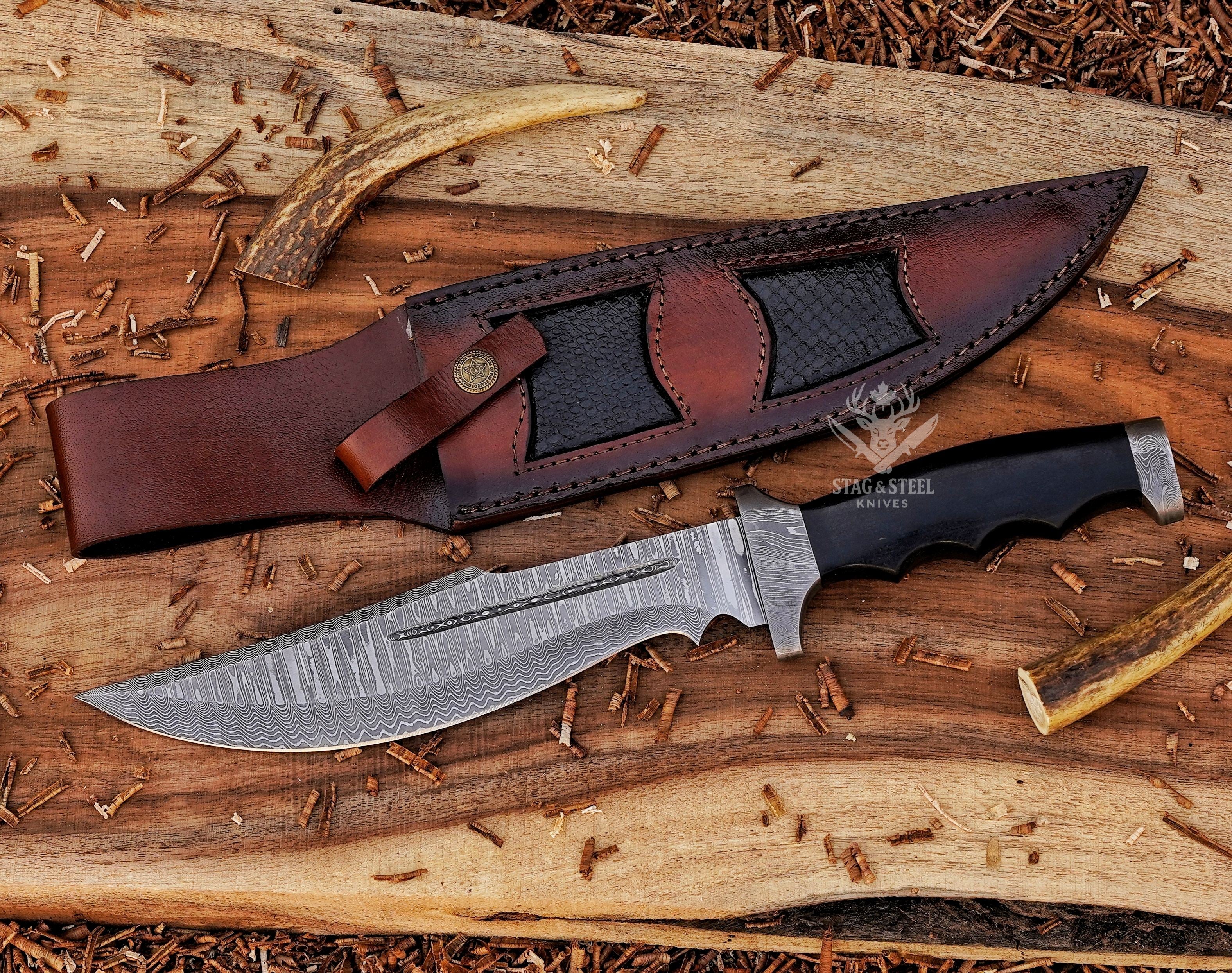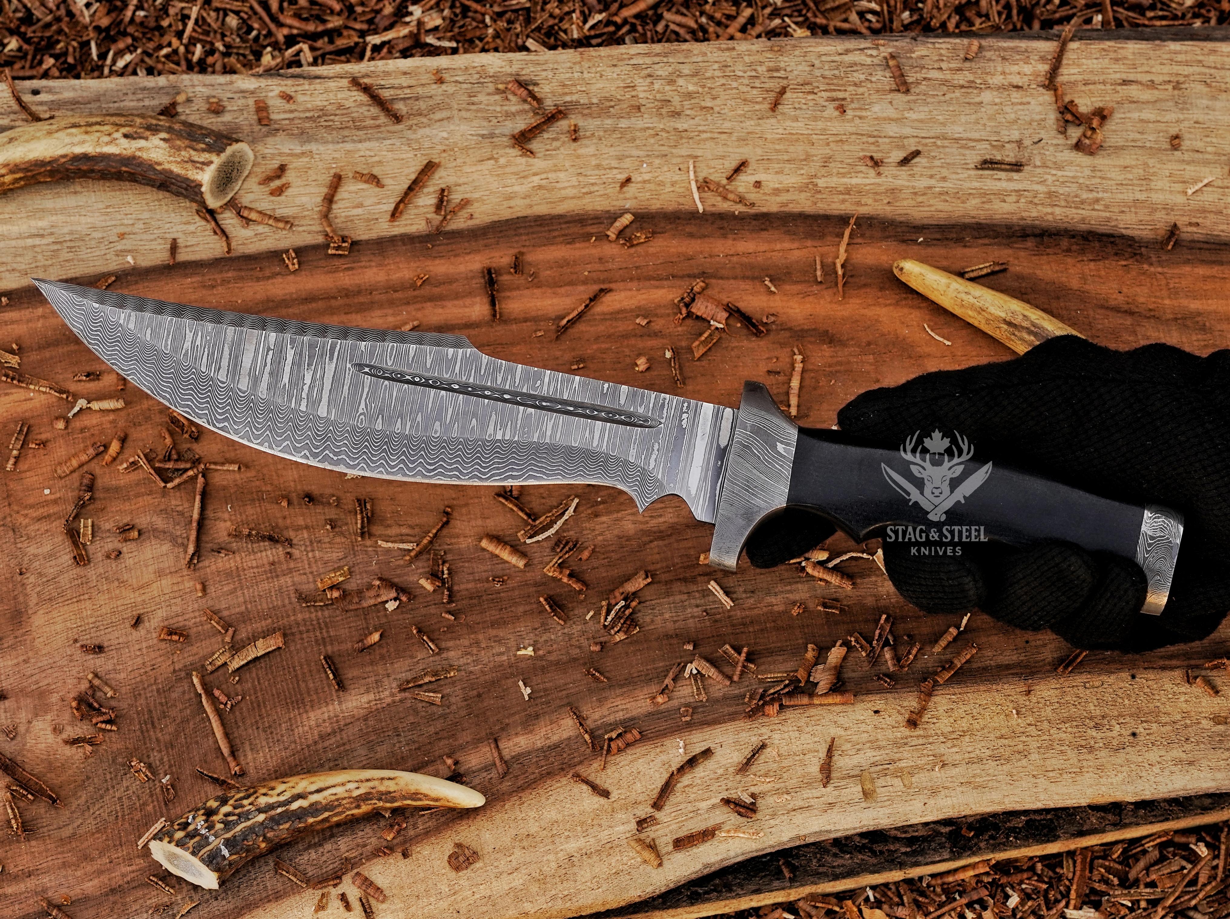 We hand-forged this stainless Damascus steel knife for those who want the best in performance and style. This stainless Damascus Bowie knife is more than just a tool; it is a work of art for true knife enthusiasts.