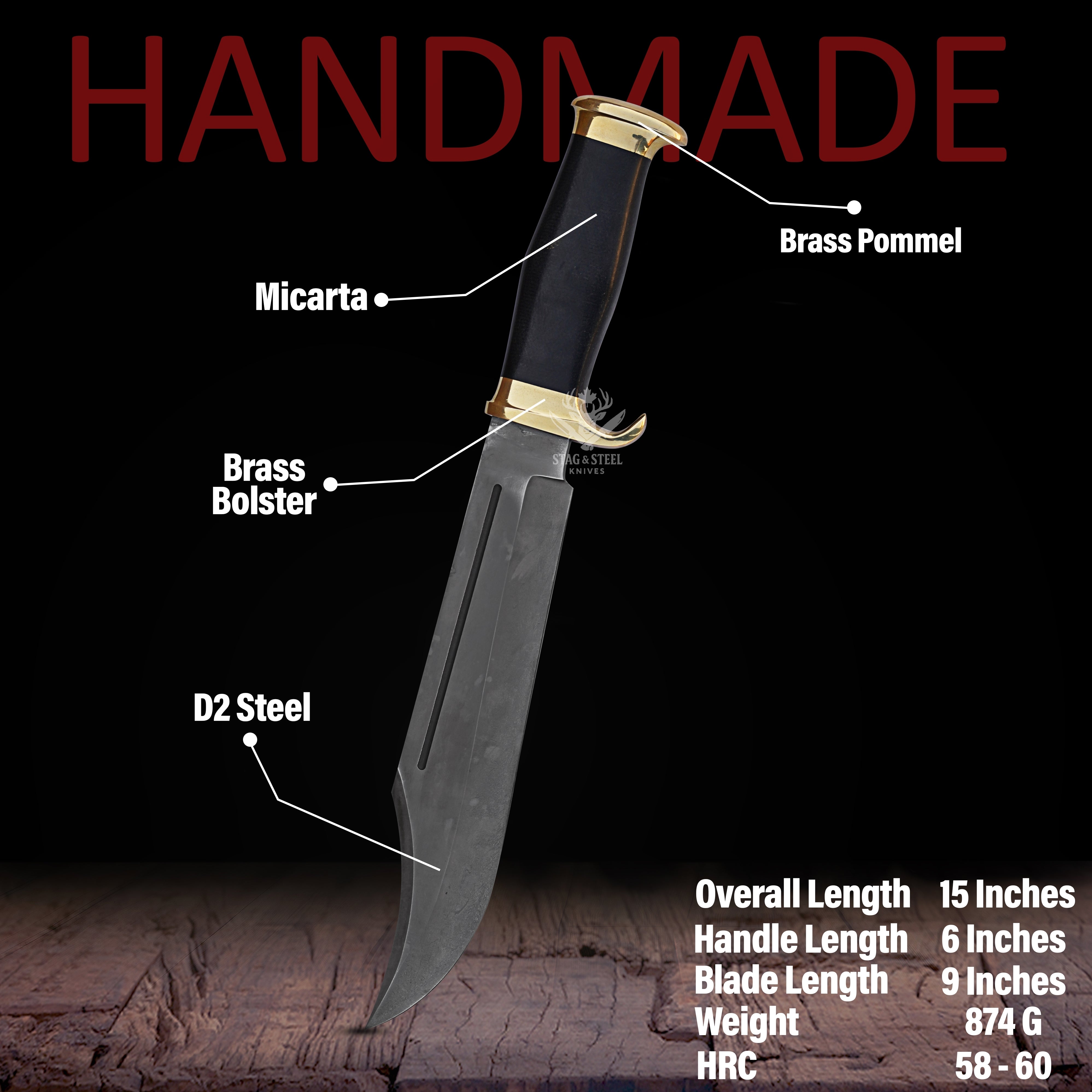 Out in the wild, constructing camp, hunting, or just gathering ancient blades this D2 steel bowie knife provides the assurance that a real life survival mate would provide.