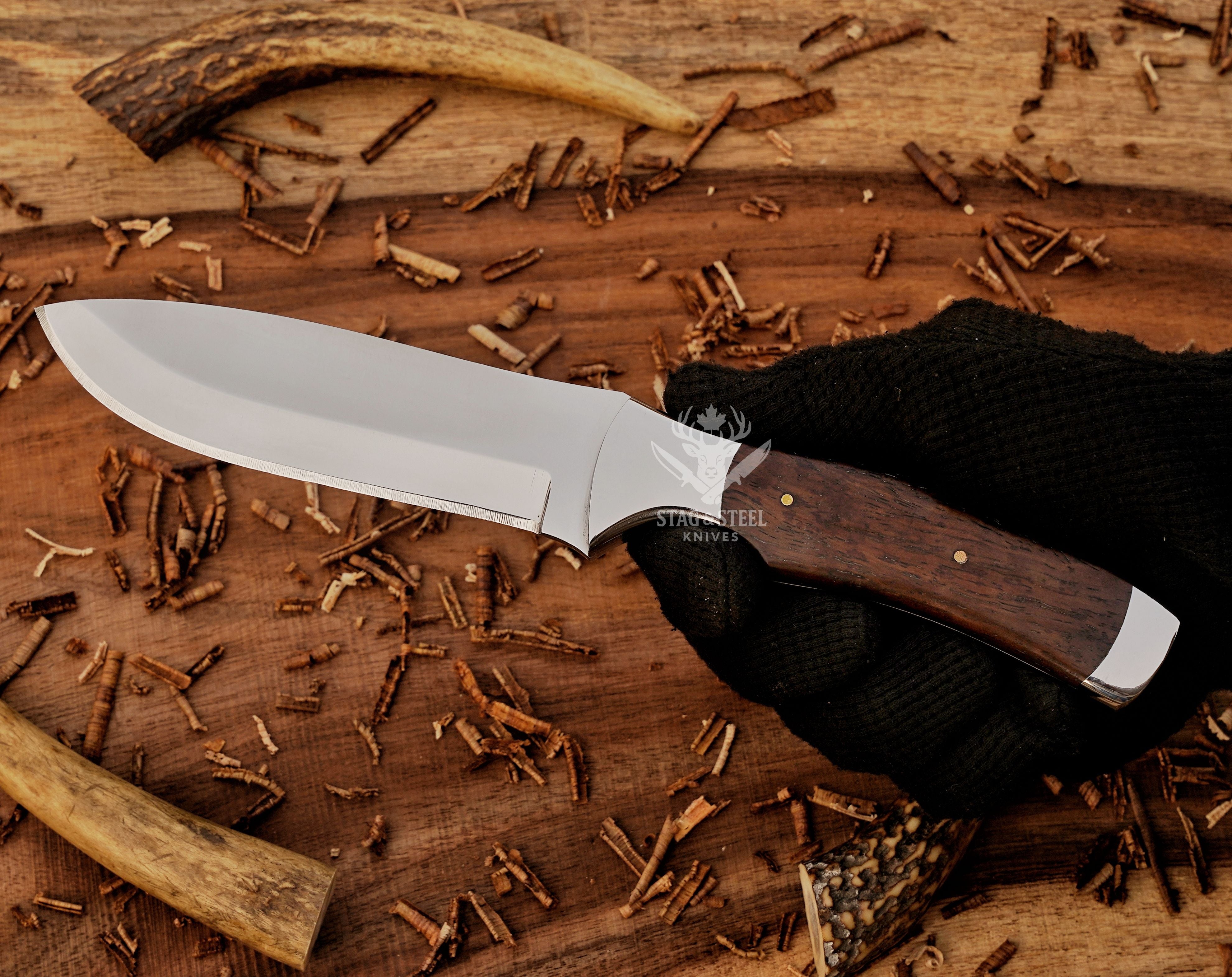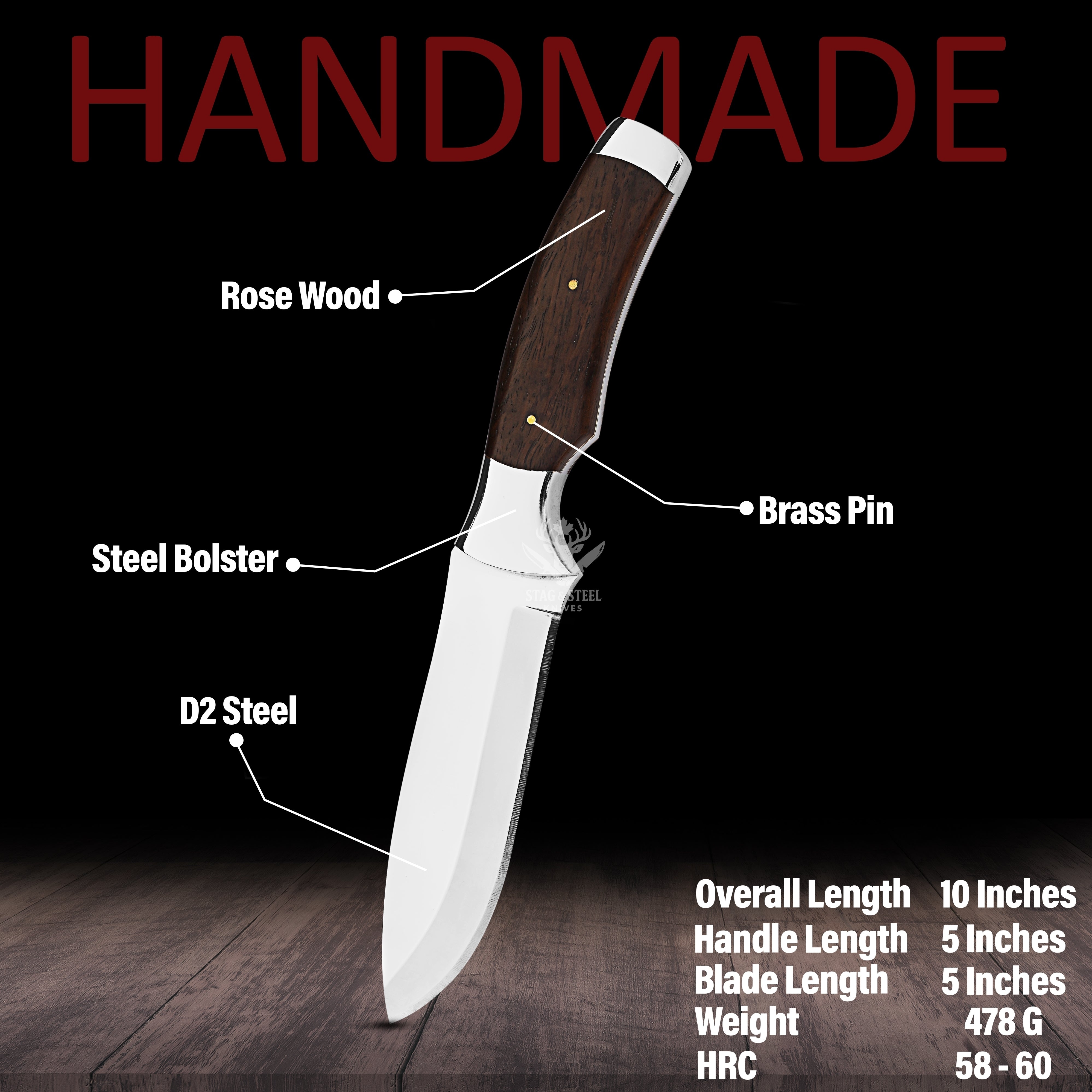 D2 Steel Bushcraft Knife: Mirror Polish Blade, Ironwood Handle